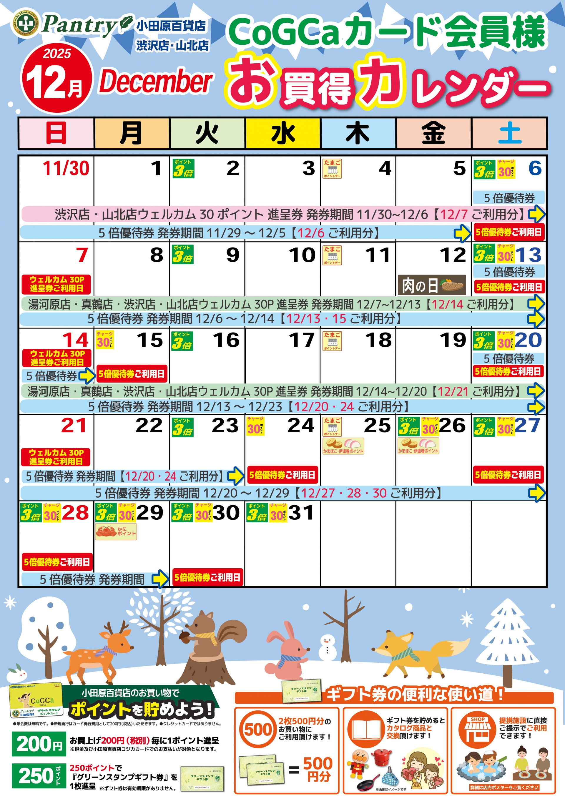 『渋沢店・山北店』2025年12月お買い物カレンダー