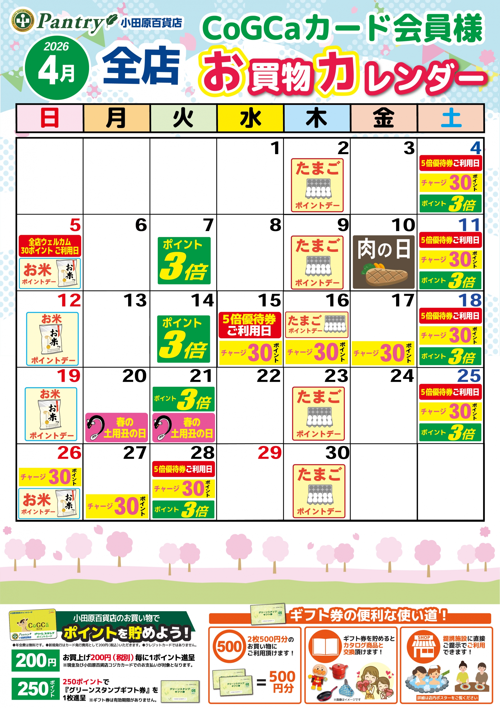 『全 店』2026年4月お買い物カレンダー