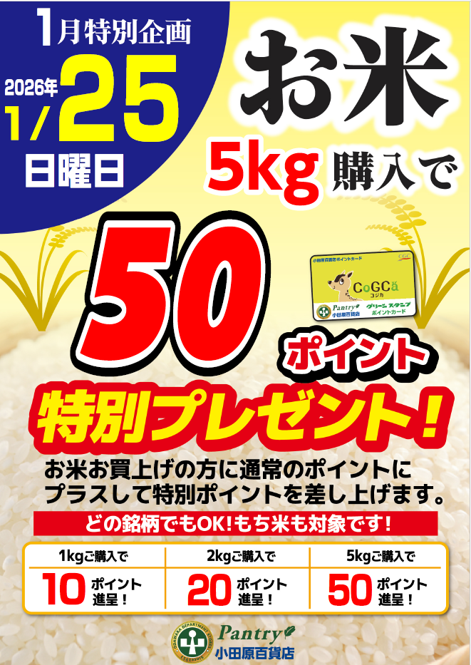 1月25日お米購入ポイントプレセント