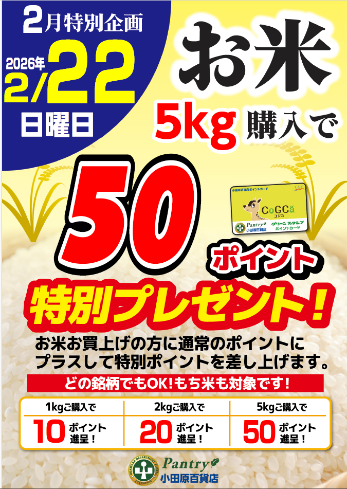 2月22日お米購入ポイントプレセント