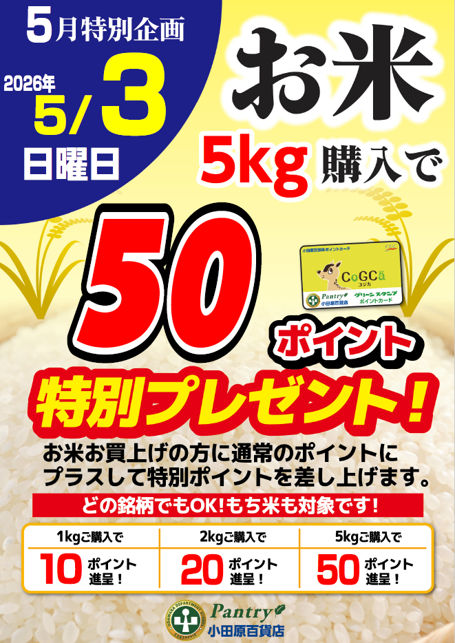 5月3日お米購入ポイントプレセント