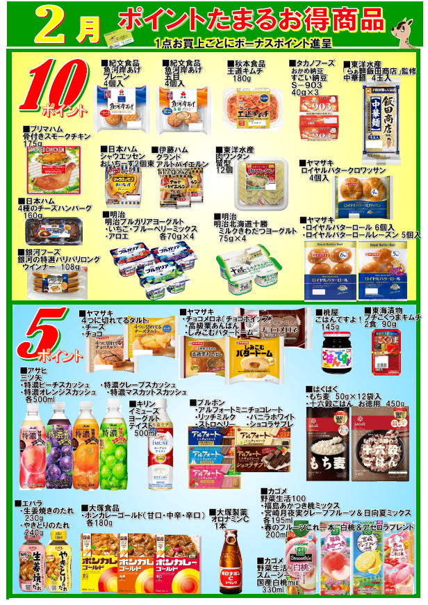 会員様へお得なお知らせ! ポイントが貯まるお得商品のご紹介! 一覧の商品を買うと表示されているポイントを差し上げます。 この機会に会員になってポイントをゲットしてください。