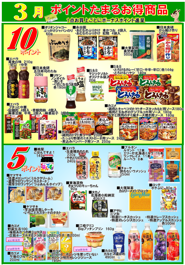 会員様へお得なお知らせ! ポイントが貯まるお得商品のご紹介! 一覧の商品を買うと表示されているポイントを差し上げます。 この機会に会員になってポイントをゲットしてください。