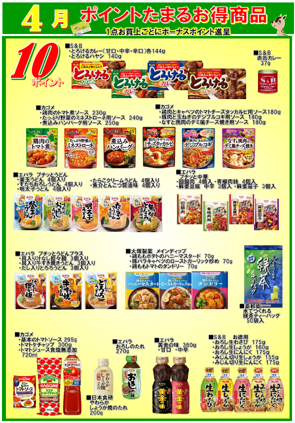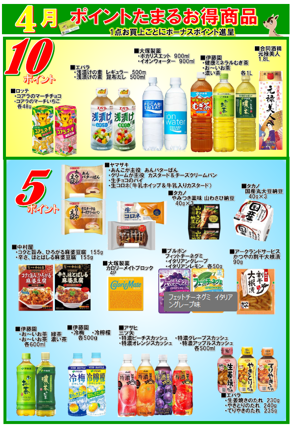 会員様へお得なお知らせ! ポイントが貯まるお得商品のご紹介! 一覧の商品を買うと表示されているポイントを差し上げます。 この機会に会員になってポイントをゲットしてください。