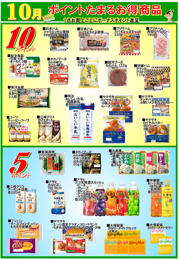会員様へお得なお知らせ! ポイントが貯まるお得商品のご紹介! 一覧の商品を買うと表示されているポイントを差し上げます。 この機会に会員になってポイントをゲットしてください。