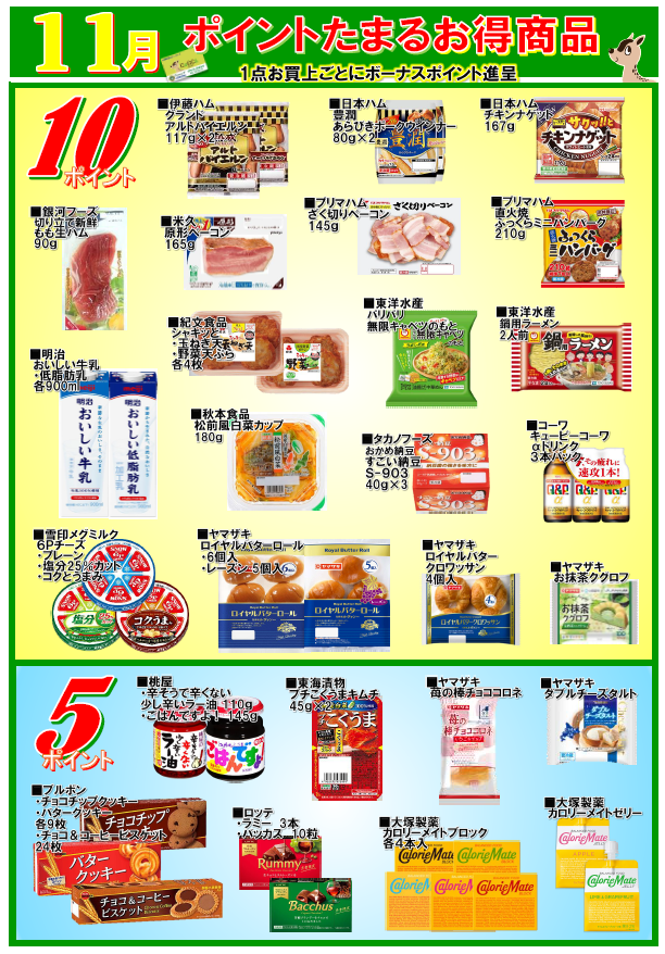 会員様へお得なお知らせ! ポイントが貯まるお得商品のご紹介! 一覧の商品を買うと表示されているポイントを差し上げます。 この機会に会員になってポイントをゲットしてください。