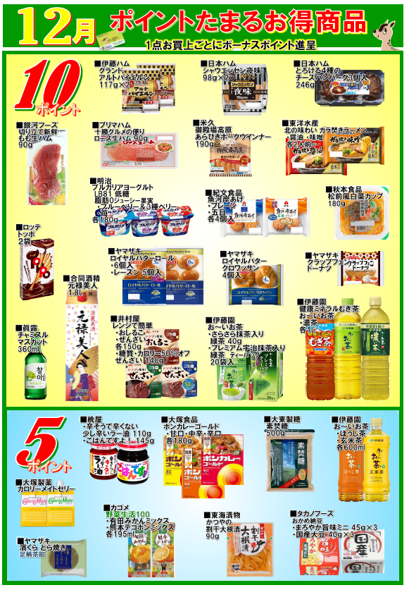 会員様へお得なお知らせ! ポイントが貯まるお得商品のご紹介! 一覧の商品を買うと表示されているポイントを差し上げます。 この機会に会員になってポイントをゲットしてください。