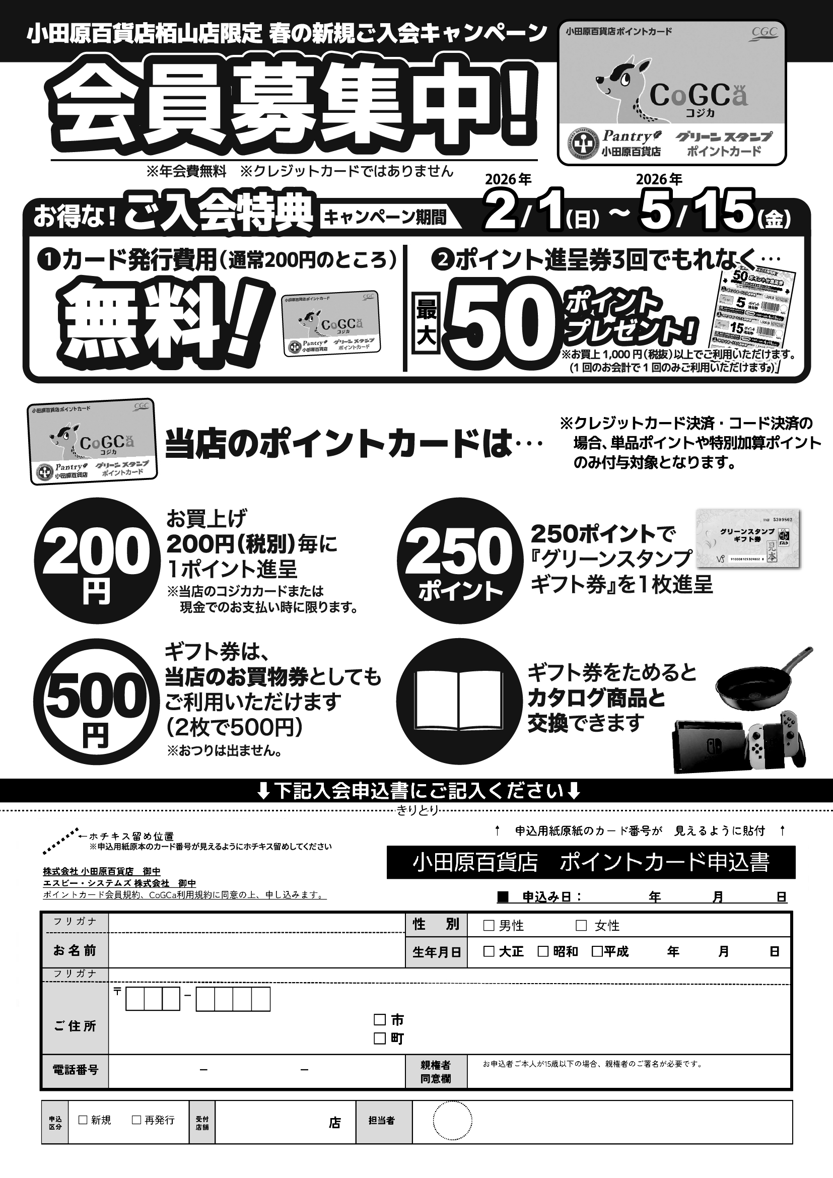 今なら2月1日~5月15日までにポイントカードご入会のお客様はカード発行費用がなんと無料!